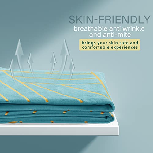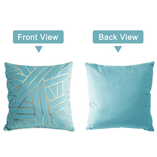 Idocolors Set di 2 Fodere per Cuscini in Velluto Blu Chiaro 45x45 cm Decorativi Copricuscini per la Casa, Federa per Cuscino a Righe Dorate per Divano, Camera da Letto, Auto