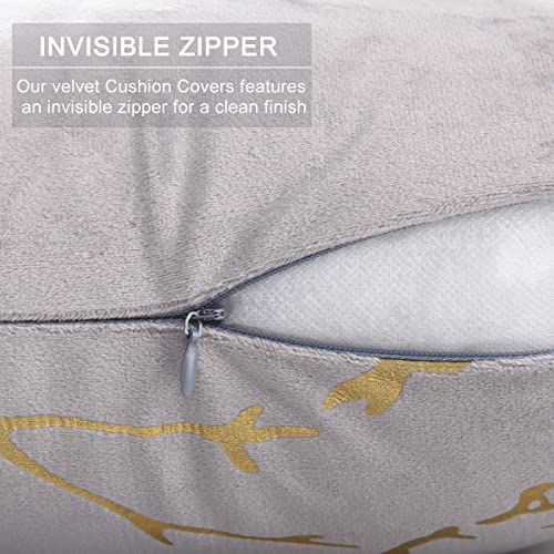 Idocolors Set di 2 Fodere per Cuscini in Velluto Decorativi Copricuscini per la Casa, Copertura per Cuscino a Rami Dorate per Divano, Camera da Letto, Auto Grigio 45x45 cm