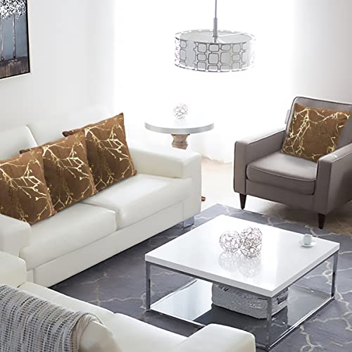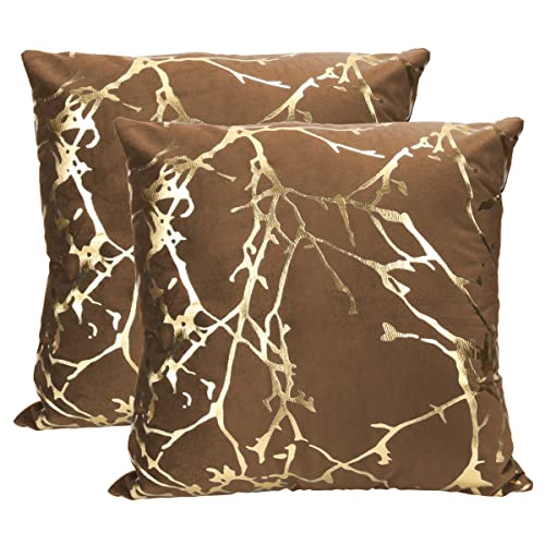 Idocolors Set di 2 Fodere per Cuscini in Velluto Decorativi Copricuscini per la Casa, Copertura per Cuscino a Rami Dorate per Divano, Camera da Letto, Auto Marrone 45x45 cm