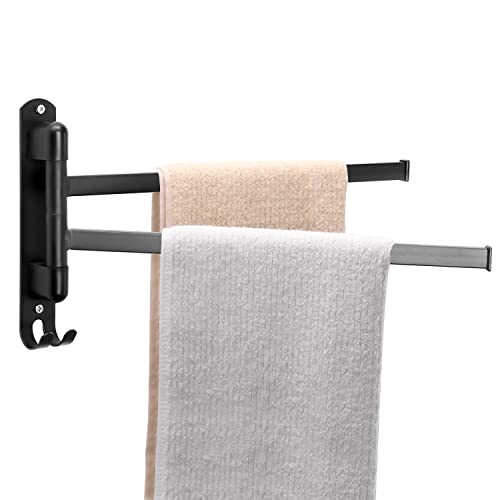 Idocolors Portasciugamani da Parete con 2 Barre Girevoli e Ganci, Portasciugamani da bagno, Foratura a Vite o senza Foratura a Colla, Appendiabiti da Parete Nero
