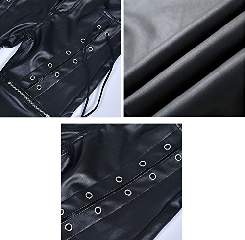 Idopy Pantaloni in su UP merlettano i Pantaloni Neri di Cuoio del Faux di Stile degli Uomini