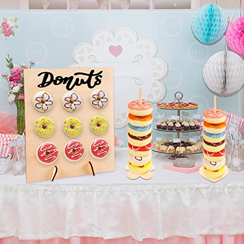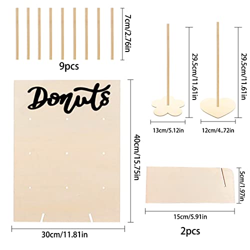 Ampio utilizzo: la parete in legno da 40 x 30 cm può contenere 2-3 ciambelle su ogni palo, il supporto per ciambelle a torre alta 29,5 cm può contenere 5-6 ciambelle, ideale per matrimoni, compleanni, lauree, baby shower. I vostri ospiti godranno ancora di più l'evento.