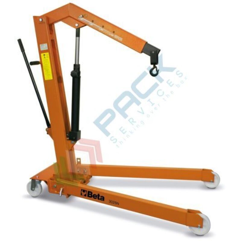 Gru idraulica pieghevole con pompa a doppio effetto - Beta 3025N Caratteristiche: • Portata massima: 1 t • 4 posizioni di carico: 300-600-800-1000 kg • Con valvola limitatrice di carico e stelo cromato • Velocità di discesa controllata • Ruote in nylon • Altezza massima: 2420 mm Peso: 99 kg Cod. Art. A mm B mm C mm D mm E min÷Max mm Peso kg 030250110 3025N 1560 1600 1000 880 1000-1300 99