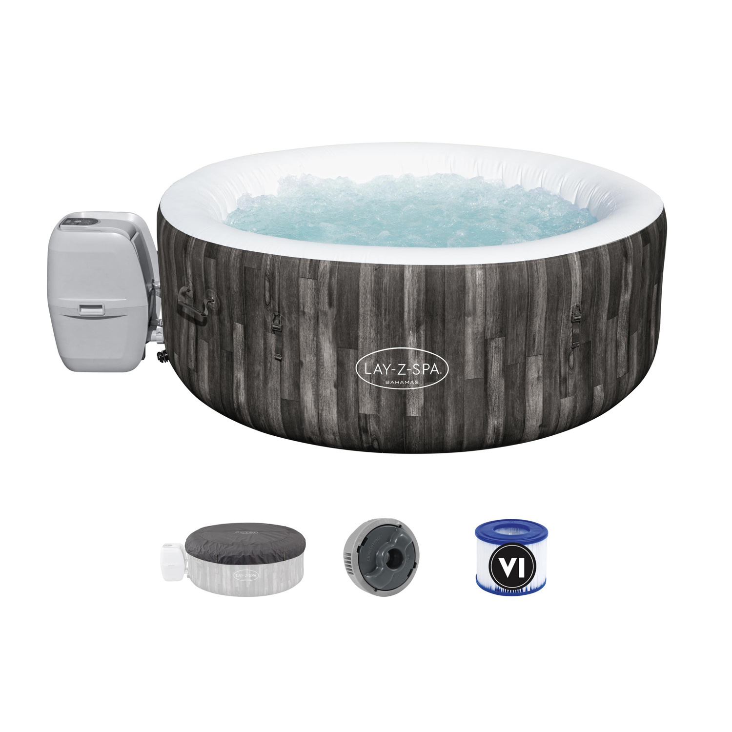 Lay-z-Spa Bhamas di Bestway è la vasca idromassaggio gonfiabile progettata per offrire un'esperienza di massaggio piacevole e rilassante per 4 persone. Il sistema AirJet, composto da 120 getti d'aria sul fondo, ti regalerà un idromassaggio sempre caldo e spumeggiante. Le pareti sono realizzate in DuraPlus, materiale resistente a forature e usura che mantiene la forma originaria anche dopo anni. La funzione di riscaldamento Freeze Shield impedisce il congelamento dei componenti interni durante i periodi più freddi permettendo di usare l'idromassaggio tutto l'anno. La pompa, oltre a gonfiare rapidamente la vasca, riscaldare e filtrare l'acqua e controllare il sistema di massaggio, include anche vani portabicchieri per bevande e snack a portata di mano. Include il dispenser ChemConnect che mantiene l'acqua pulita e sana con la giusta dose di cloro. La spa è dotata di copertura rinforzata che evita dispersione di calore e accumulo di polvere e detriti sull'acqua. Dimensioni: 180x 66 cm.