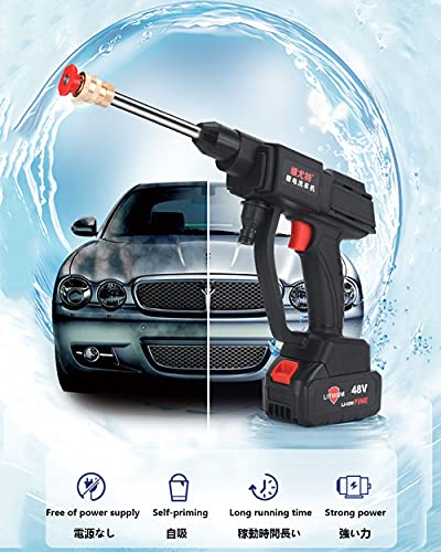 LYBC Idropulitrice a Batteria Portatile Idropulitrice Alta Pressione,con Tubo da 5M,2 Ugello,Barra di prolunga,Idropulitrice (Size: 48Vx2 Battery)