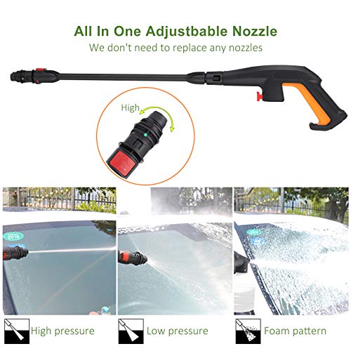 【UGELLO A PRESSIONE REGOLABILE】: L'ugello regolabile tutto in uno è più facile da usare. Non è necessario rimuovere l'ugello, basta ruotare in senso antiorario per aumentare la pressione per la pulizia, ruotare in senso orario per passare alla modalità di pressione dell'acqua più bassa per il lavaggio.