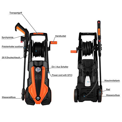 Idropulitrice ad Alta Pressione, AOLIER Idropulitrice ad Acqua Fredda (Max: 1760 watt 92 bar 5.4 L/Min) con ugello all-in-one, tubo ad alta pressione, ideale per auto, giardino