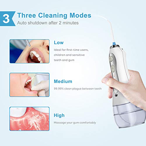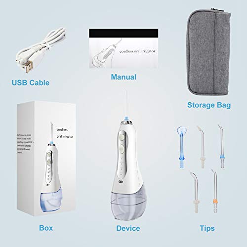 Idropulsore Dentale Portatile 300ML, Maxcio Irrigatore Orale Professionale, Irrigatore da Viaggio Ricaricabile da USB con 3 Modalità e 5 Beccucci per Igiene Dentale e Salute Dentale