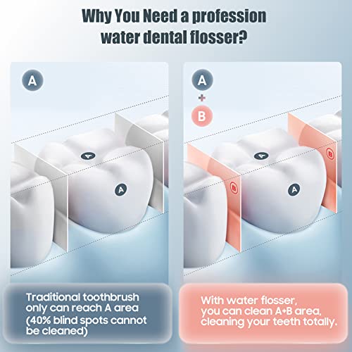 Potente filo interdentale Water Pik: il filo interdentale senza fili KooDux fornisce 1400-1800 volte/min ad alto impulso d'acqua, una forte pressione di 40-140 psi. può rimuovere fino al 99,9% di residui di cibo, tartaro e placca, pulire i denti in modo più efficace rispetto al normale spazzolino da denti. Ideale per denti, gengive, tutore e ponti per la cura quotidiana e sbiancare i denti. È un regalo ideale per familiari, amanti e amici.