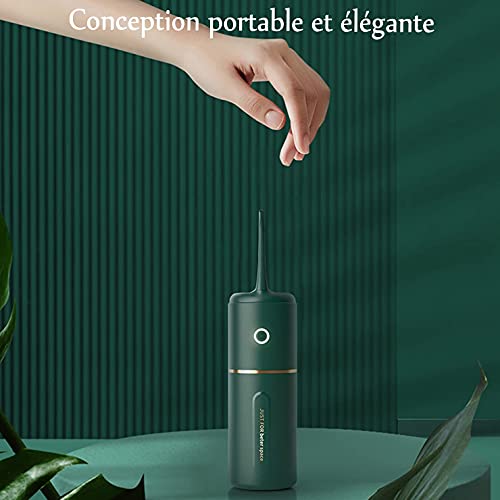 Idropulsore a getto dentale, ricaricabile, portatile, serbatoio dell'acqua rimovibile, da 280 ml, 3 modalità di funzionamento e 3 ugelli, ugello morbido da 0,8 mm
