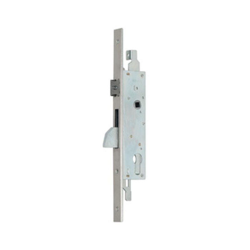 Art. 98617 a 1 o 3 punti di chiusura. Frontale in acciaio inox 25 mm, asole sul frontale per facilitare il montaggio delle aste interne. Completa di adattatori di aste. Foro per cilindri profilati o a spillo. Lo scrocco ed il rullo (opzionale) sono