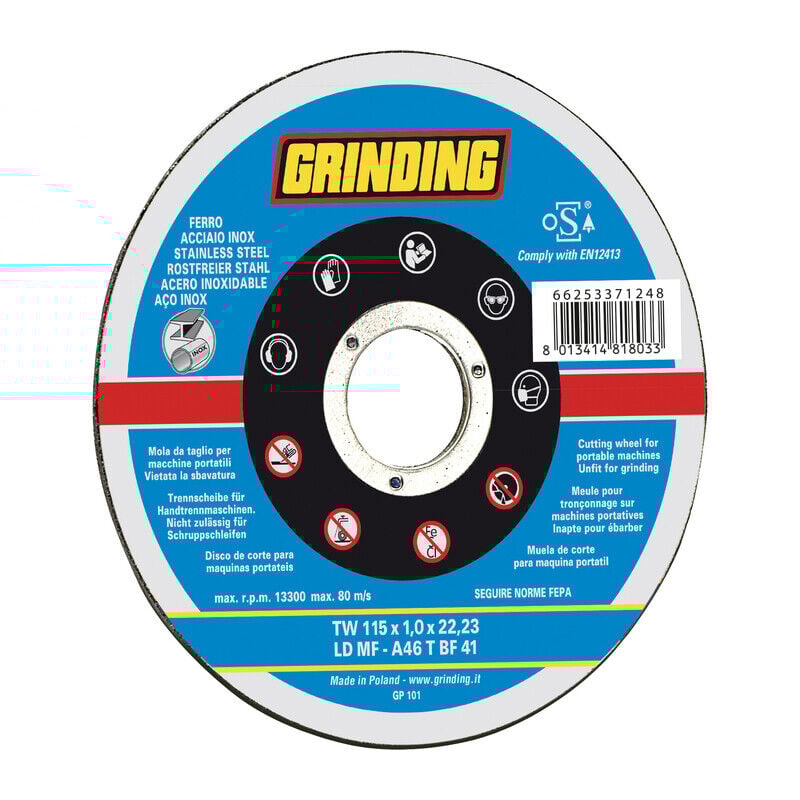 GRINDING DISCO PIANO PER FERRO D.230X1,9 Mod. 'TW-LDMF' resinoidi rinforzate piane. Per applicazioni nell industria di acciaio inox e ferro e per il taglio di lamierati e particolari in acciaio e acciaio inox. Foro 22,2 mm Diametro 230 mm Spessore 1,9 mm Categoria dell'articolo: MOLA ABRASIVA PER METALLI