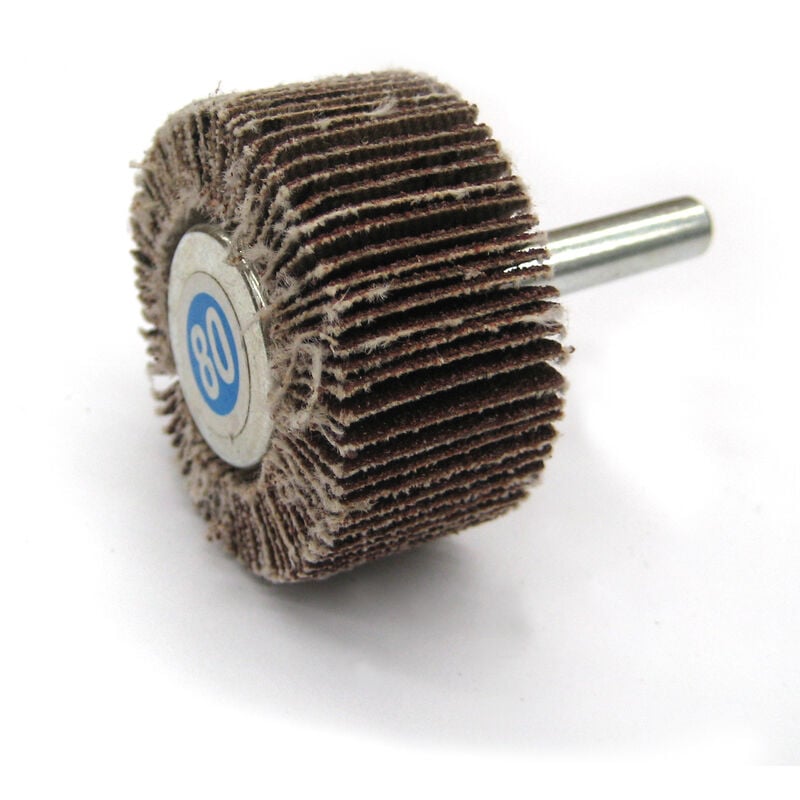 Ideale per levigatura, finitura e lucidatura di lamiere, acciaio, inox, leghe leggere, metalli non ferrosi, ghisa, legno. Gambo mm. 6, grana 80.