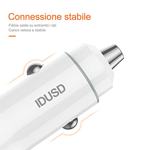IDUSD Caricabatteria da auto 12W, Accendisigari USB a doppia porta con LED, Caricabatteria da Auto 5A-2.4V per Phone 13/12/11/10/X/8, Sansung S21/S20/S10/S9/S8/S7, LG, HTC, Sony, Huawei, Xiaomi