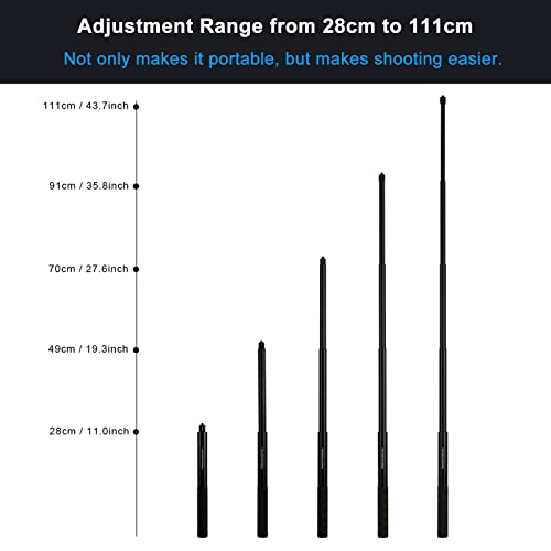 〖Altezza〗: l'altezza del treppiede è 17,5 cm/6,88 pollici quando non è aperto e 12,5 cm/4,92 pollici quando è disteso. E l'altezza dell'asta di prolunga è di 28 cm / 11,02 pollici prima di essere allungata e può essere estesa a 111 cm / 43,7 pollici dopo essere stata allungata.
