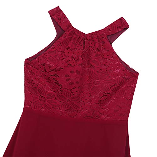 IEFiEL Abito da Cerimonia Ragazza Vestito di Battesimo Abito di Principessa con Due Piani Lungo Gonna Plissettata 4-16 Anni Rosso A 14 Anni