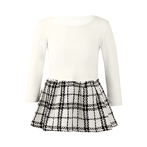 IEFiEL Bambina Completini Neonata Autunno Abito Girocollo a Scozzese + Blazer Maniche Lunghe in Cotone Abiti 2Pcs Set Tuta Femminile Invernale Casual 18 Mesi-6 Anni Bianco 4-5 anni