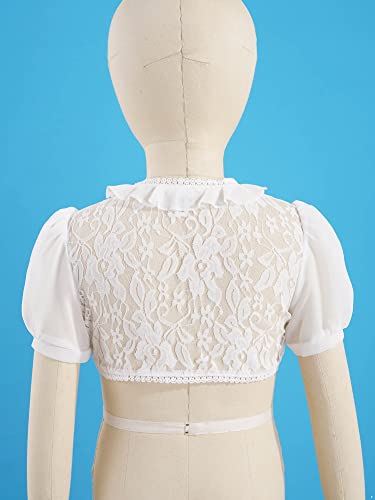 IEFiEL Bambina Pizzo Manica Corta a Sbuffo Basic Bolero Aperto Ragazza Cardigan Estate Giacca Corta per Cerimonia Chiffon Coprispalle Shrug Design Orlo Irregolare Bianco 6 Anni