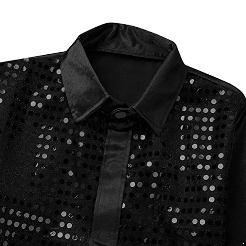 IEFiEL Bambini Camicie con Paillettes Lucenti a Maniche Lunghe da Ballo Jazz Latino Americano Ragazzi Costumi di Danza Moderna Performance Fantasia Dancewear 4-14 Anni Nero 10-12 Anni