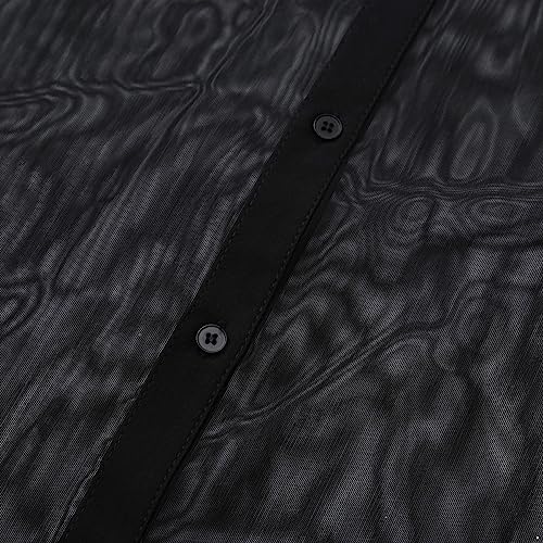 IEFiEL Camicia Casual Uomo Slim Fit a Rete Trasparente Maniche Lunghe Maglietta Bianca Nera Camicietta Discoteca Business Quotidiano Tempo Libero T-Shirt Canotta M-XXL Nero M
