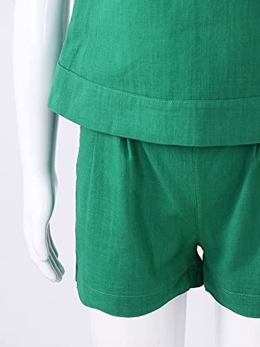IEFiEL Completi Estivi 2 Pezzi per Bambine 2-7 Anni con Girocollo Top Camicetta Maniche Corte a Volant + Pantaloncini a Vita Alta con Elastico Casual Set di Abbigliamento Verde 3-4 anni