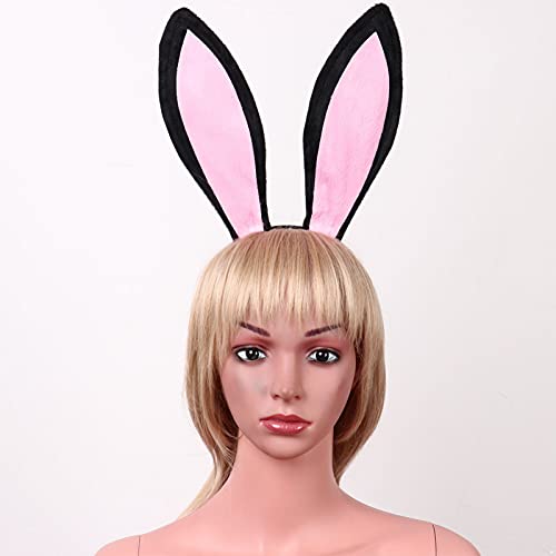 IEFIEL Kit da Coniglietta Set di Accessori Coniglietto da Donna Costume da Coniglio Orecchie Coniglio Cerchietto Coda Polsini Papillon per Costume Cosplay Festa di Pasqua Black&Pink&White Taglia unica