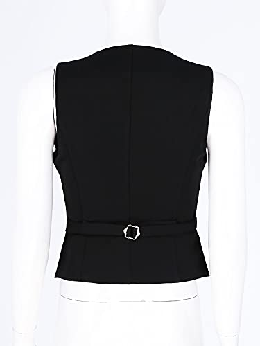 IEFiEL Gilet Ufficio da Donna Doppiopetto Gilet Classico Collo a V Gilet Vittoriano Medium Steampunk Cardigan Senza Maniche Giubbotto di Cotone Panciotto Abbottonato Nero S
