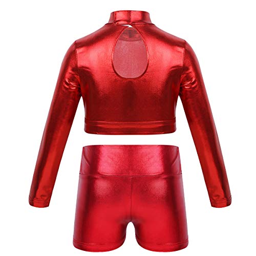 IEFiEL Tuta da Ginnastica Artistica Ragazza Leotard Balletto Body da Danza Classica Yoga Jogging Sportiva Maniche Lunghe con Pantaloncini Allenamento Dancewear Rosso 11-12 anni