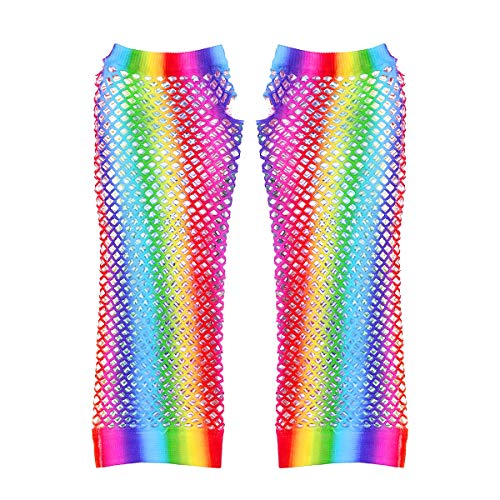 IEFiEL Guanti Arcobaleno da Donna Senza Dita a Rete Elasticizzato Guanti Colorati da Danza Ballo Sposa Party Carnevale Cosplay Fancy Dress Tema Anni '80 Costume Accessori Colorato B One Size