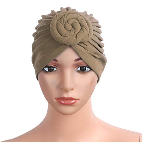 IEFiEL Turbante Capelli Cotone Donna Turbante Cuffia Cappello Elastico in Berretto Pre-Annodato Beanie Copricapo Turbante Chemioterapia per Chemio Perdita di Capelli Marrone One Size