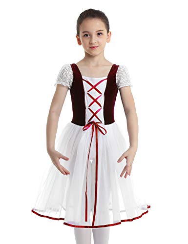 IEFiEL Vestito da Balletto Bambine Ragazze Leotard Body da Ginnastica Danza Classica Tutu Abito da Ballo Spettacolo Saggio Regalo di Compleanno Elegante in Pizzo rosso 5-6 Anni