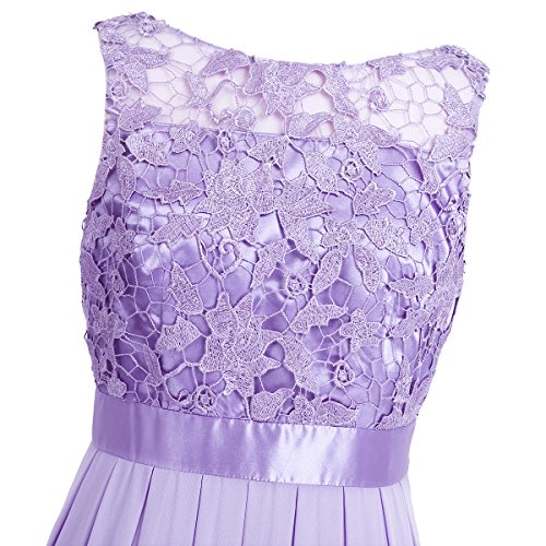 IEFiEL Vestito da Cerimonia Donna Elegante in Chiffon Vestito da Sera Festa Compleanno Vestito Impero Lungo Linea ad A Abito da Sposa Damigella Matrimonio Senza Maniche Lanvanda 42