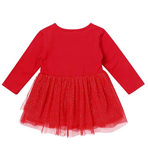 IEFiEL Vestito Natale Bambina Abito Natalizio Neonata Manica Lunga Stampa Renna e Neve in Tulle Vestito dal Tutu Principessa Costume di Natale Capodanno Abitini Rosso 18-24 Mesi