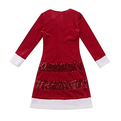 IEFiEL Vestito Natalizio Invernale Bambina e Ragazza Elegante Vestito Rosso di Natale Regalo a Maniche Lunghe Vestito da Cerimonia Sera Festa Partito Party 2-16 Anni Rosso 8 Anni