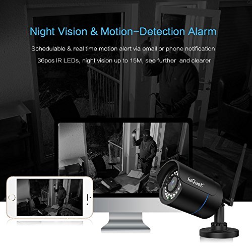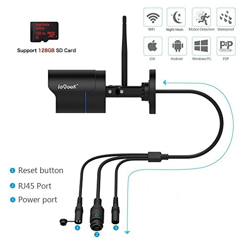 IeGeek 1080P Telecamera IP Esterna HD Impermeabile Wlan Telecamera di Sorveglianza, Easy Setup, Visione Notturna, Motion Detect Alert, Vista a Distanza via Smart Phone/Tablet/PC, Fino a 128 GB