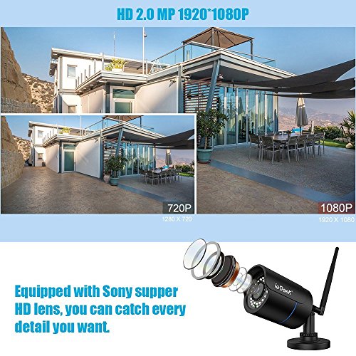 1080P HD IMMAGINE QUALITÀ- è possibile vedere l'immagine più chiara e dettagliata con questa fotocamera ad alta risoluzione. IR Night Vision-vedere cosa succede al buio con luci ad infrarossi automatico per la visione notturna 49ft. Intemperie Camera Housing-È possibile installare le telecamere esterne ed interne per coprire la vostra casa in tutti gli aspetti e punti.