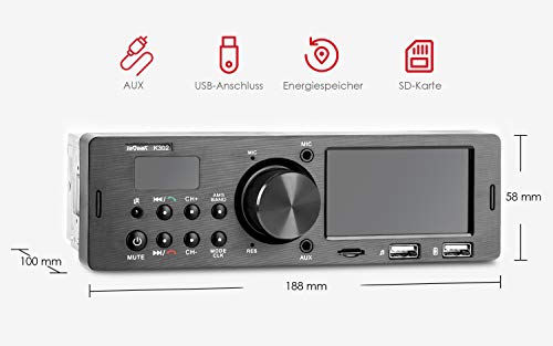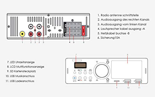 Supporta FM/AM e RDS - è un autoradio Bluetooth, con funzione RDS. Radio FM / AM stereo di alta qualità (FM: 87,5-2, 8 MHz, AM: 522-1620 MHz). È possibile memorizzare fino a 30 stazioni radio (AM: 12, FM: 18). In questo modo è possibile ricevere importanti messaggi di traffico in tempo reale, per rendere il vostro viaggio senza stress.