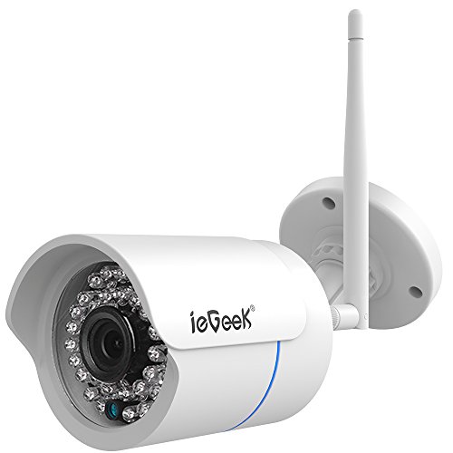 IeGeek, [migliorata] camera da esterno wireless IP impermeabile, 720P, telecamera di sorveglianza HD, con WiFi, Wlan, la videocamera giusta per una casa sicura, supporta scheda SD da 128 GB