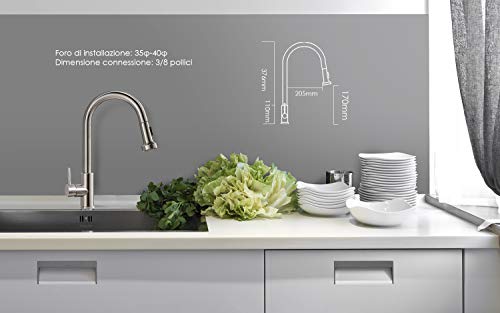 ✅ Realizzato con materiali di alta qualità >>> Il rubinetto della cucina ieGeek realizzato con corpo in ottone massiccio, alta resistenza, elevata durezza, molto resistente;