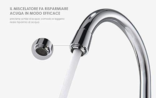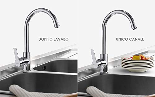✅ Rotazione girevole a 360 °, adatta per lavabo singolo o doppio, stile classico e design curvo.