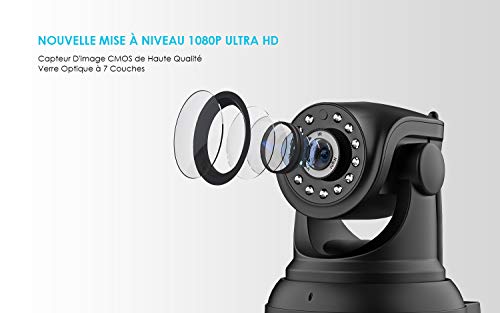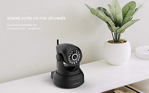 IeGeek - Telecamera IP Wi-Fi, 1080p HD, telecamera di sorveglianza da interno senza fili, telecamera di sicurezza Pan/Tilt con audio bidirezionale, visione notturna, allarme di rilevamento di movimento, e-mail push, colore: Nero