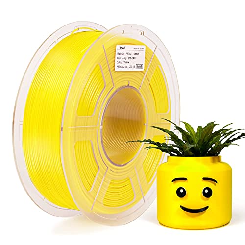 IEMAI Filamento per Stampanti 3D in PETG, Filamento in PETG 1,75 mm, Giallo, 1 kg per Bobina, Precisione Dimensionale +/- 0,02 mm
