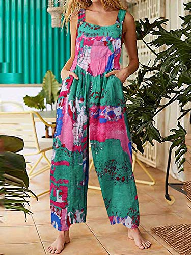 L&ieserram Salopette Casual da Donna con Bretelle Tute estive Boho Larghe a Gamba Larga Tuta Corta Floreale Tuta Larga Pantaloni Larghi con Tasca (C-Green, Small)