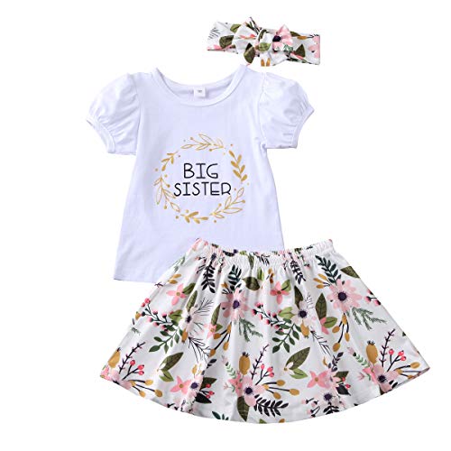 L&ieserram Vestiti 3pz di Fascia+Camicia+Gonna Stampata Fiore o Cappello+Pagliaccetto+Pantalone per Bimba neonata Ragazza Bambina Primaverile Estivo Autunnale (Bianca Camicia, 1-2 Anni)