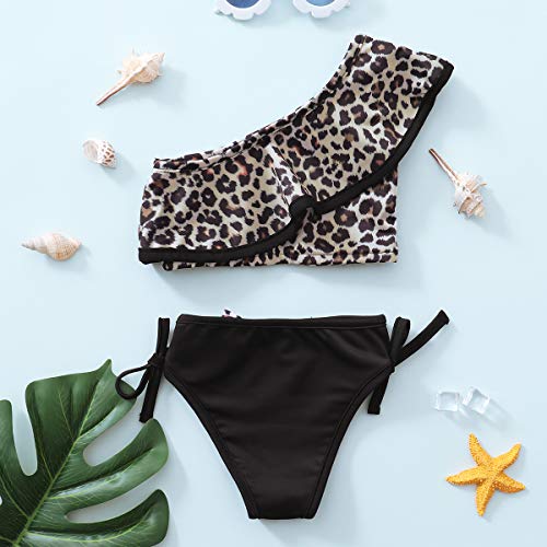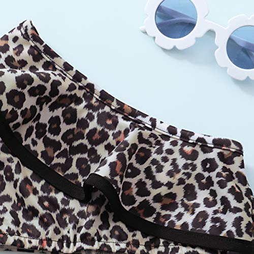 L&ieserram Vestito Costume da Bagno Stampato Punti leopardati 2pz Bolero con Merletto Spalla Vista Senza Maniche+Pantaloncini Ragazza Bambina Primaverile Estivo Autunnale (Nero, 4-5 Anni)