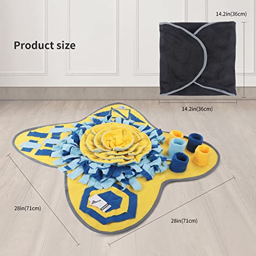 IEUUMLER Sniffing Tappeto per Cani, Dog Feeding Mat Dog Puzzle Durable And Machine Washable FC003 (71 * 71 CM, Yellow & Blue)