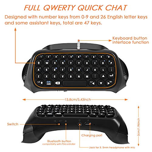 【Mini tastiera wireless】: questa mini tastiera bluetooth wireless adatta per PS4, PS4 installata dopo la maniglia originale sulla tastiera non distruggerà lo stile originale del kit maniglia, la tastiera chat PS4 sarà perfetta con la combinazione perfetta della maniglia del controller PS4