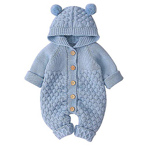 IFCOW, tutina invernale con cappuccio, a maglia, con bottoni, Azzurro, 18 mesi