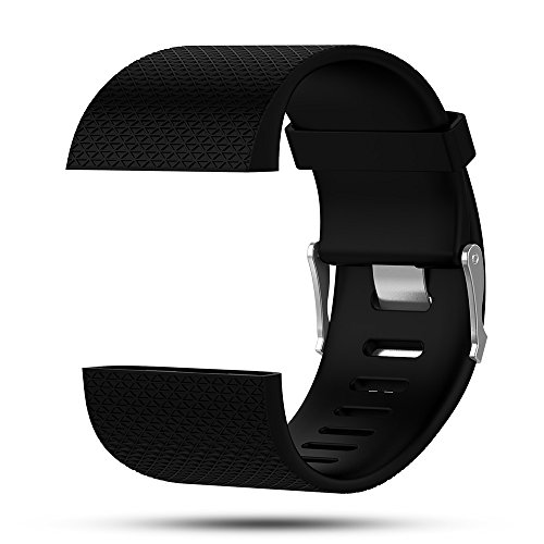 IFeeker, cinturino di ricambio per Fitbit Surge Fitness Super Watch, classico, morbido, in silicone con chiusura in metallo e kit di attrezzi, Black, L