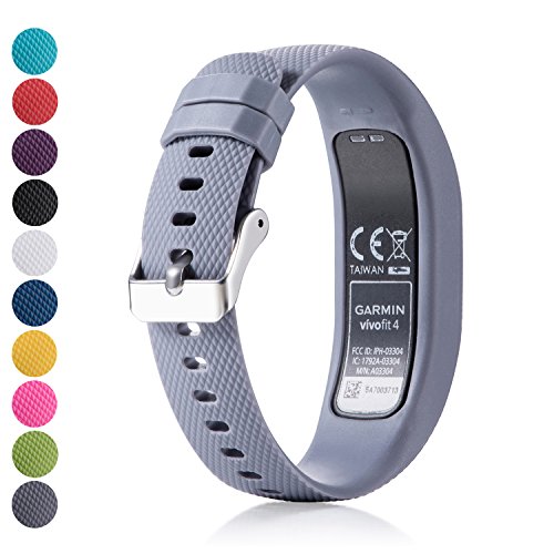 Ifeeker per Garmin Vivofit 4 replacement Watch Band classico morbido silicone chiusura in metallo fibbia custodia da braccio di supporto per Garmin Vivofit 4 Activity Tracker (Large/Small), Grey, S